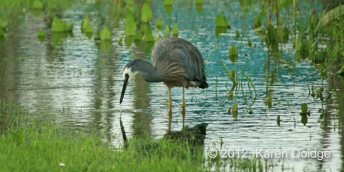 When in breeding plumage the heron has long feathers on its head, neck and back, as seen by Karen below.